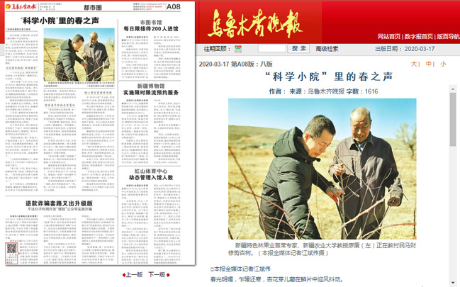 廖康是新疆特色林果业首席专家、99久久婷婷国产一区二区教授。周龙是新疆园艺学会秘书长、99久久婷婷国产一区二区教授,两人亦师亦友。