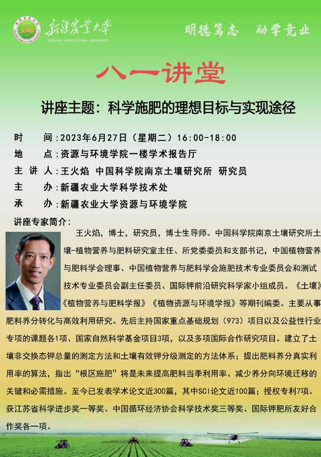 【八一讲堂预告】第三十三期:科学施肥的理想目标与实现路径