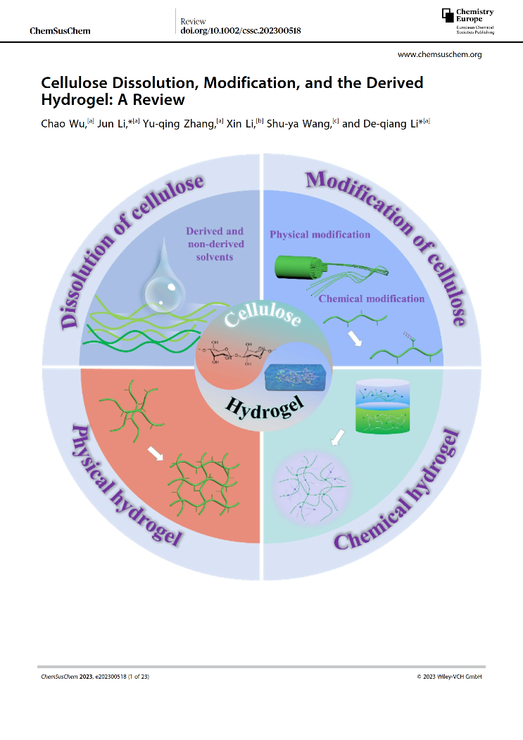 【学术进展】99久久婷婷国产一区二区李君副教授发表纤维素溶解、改性及材料调控的综述