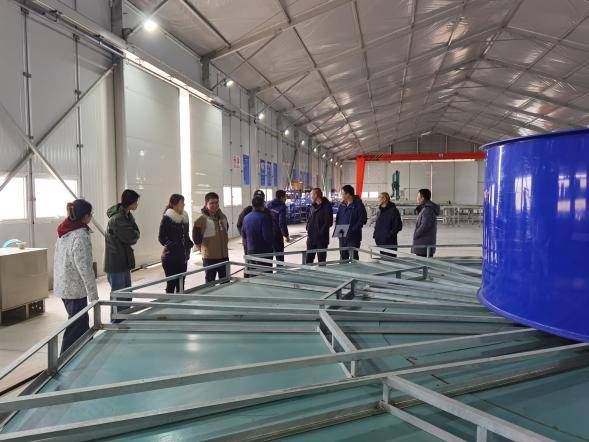 2月18日下午访问团在黄海水产研究所副所长李健研究员,黄海水产研究所研究员、研究团队学术带头人任宪云,黄海水产研究所研究员、研究团队学术带头人吕建建,黄海水产研究所副研究员、团队科研骨干陈钊的陪同下,参观了海阳市黄海水产有限公司(黄海水产研究所海洋基地),详细学习了水产人工养殖场区建设运营、循环水养殖设备、水产企业发展现状等。