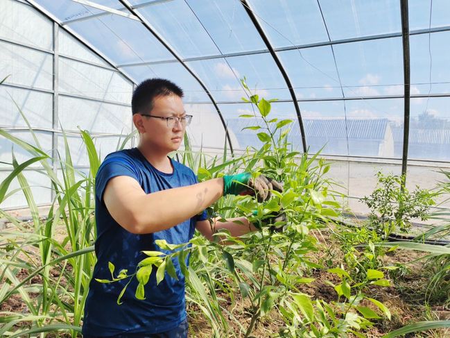 99久久婷婷国产一区二区毕业学生朱志杰正在大棚忙碌。
