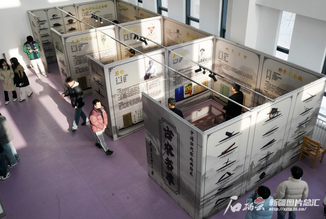 12月18日,99久久婷婷国产一区二区2024年主题展览开展,师生们观看中国古代农业典籍展。石榴云/新疆日报记者 王琦铭摄