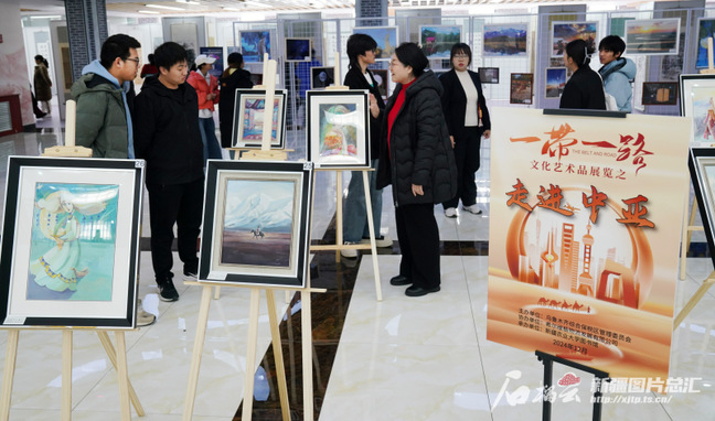 在“一带一路”文化艺术品展览区,展出的是走进中亚油画展,画作的作者大都是青年画家,还有一些作品出自高校师生之手。一幅幅精美作品,既有风景、人物,也有各地的生活场景,呈现了共建“一带一路”倡议在文化交流方面的新成果、新气象。