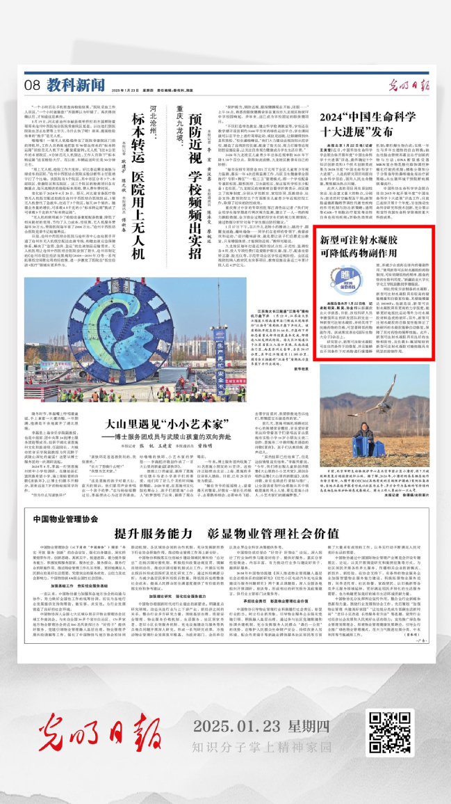 【光明日报】【瞧!我们的前沿科技】新型可注射水凝胶可降低药物副作用