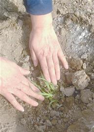 在移栽过程中,本报全媒体记者全程参与,体验将牧草种苗种进土里。 (受访者供图)