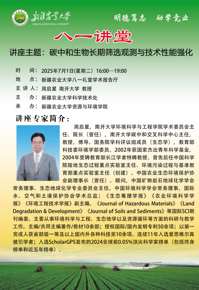 【八一讲堂预告】九十六期:碳中和生物长期筛选观测与技术性能强化